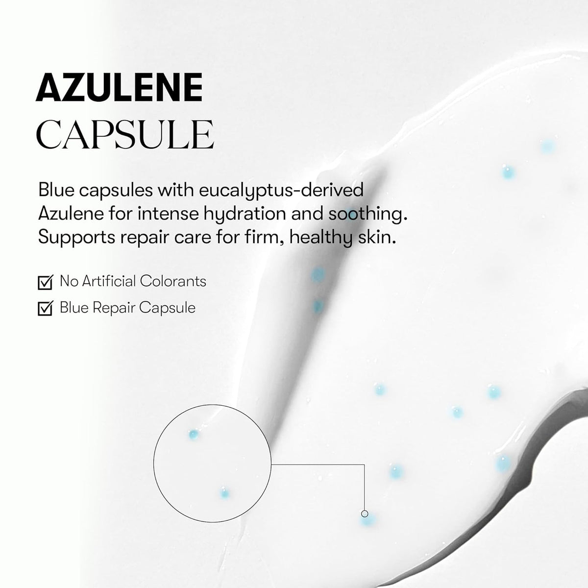 Suitable for all skin types, especially ideal for skin that is dry, mature, dull or showing signs of elasticity loss. Sensitive skin users may benefit from the soothing blue-azulene-capsule infusion.