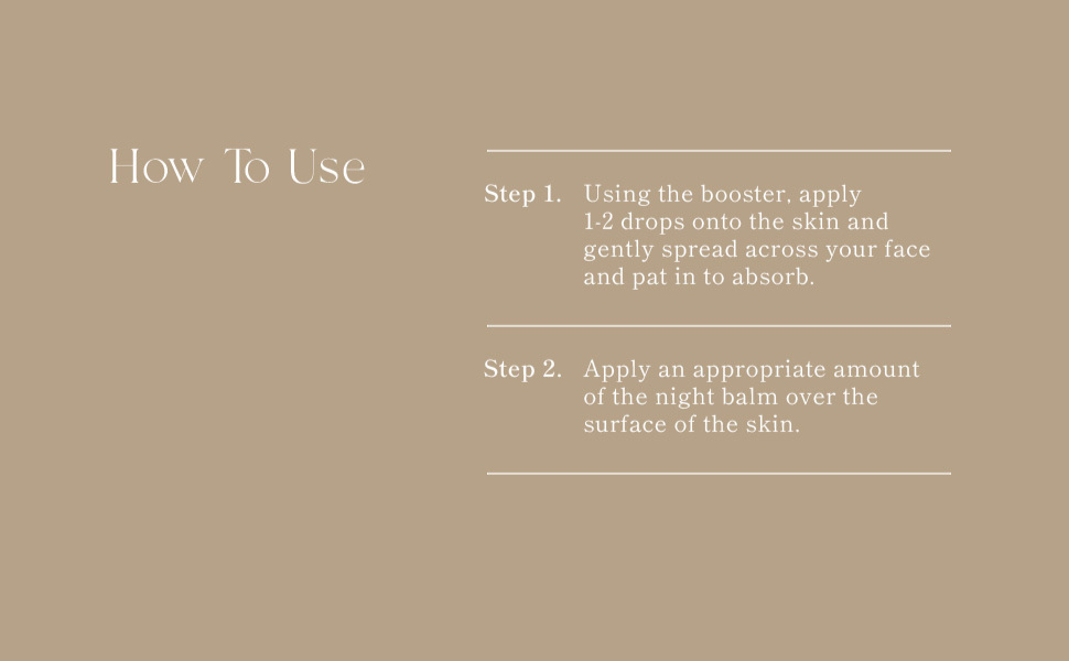 After cleansing and toning, apply the night serum evenly to the face and follow with the night cream. Use nightly for best results and wake up to hydrated, radiant skin.